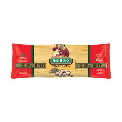 San Remo Egg Spaghetti is shaped like regular Spaghetti, it has a rich taste of egg and cooks in just 12 minutes. Use with a cream sauce to allow the full flavour of the egg to come through. It is free of all artificial colourings, flavourings, and preservatives.