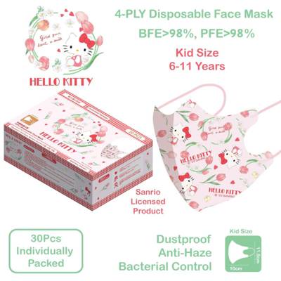 - Hello Kitty 3D 4Ply Disposable Mask Kid 6-11 years old (Spring - 30 Pcs Per Box )