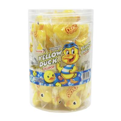 - Lollipop with yellow duck design and it is individual packaging, each bottle inside have 30pcs.