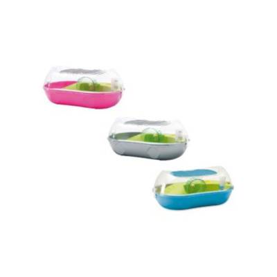 Spelos XL Entry, a modern elegantly shaped home for mice and small animals. The Spelos XL Entry is completely equipped with accessories such as an enclosed wheel, a feeding bowl and drinking bottle. The home environment around the cage stays clean thanks to plastic hood which keeps cage litter inside. The Spelos Xl Entry can also be used for one Syrian hamster. (59X37X26 Cm) Suitable for mouse and dwarf hamsters.