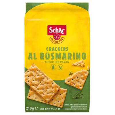 Dr Schar Gluten Free Crackers with Rosemary! The little snack in between meals! Packed in 6 portions! A gluten free, lactose free, preservative free product that does not compromise on taste or texture.