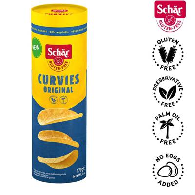 Its all about the curves! When your TV series gets you really thrilled. When youre having fun playing board games with your family. When the aperitif with your best friends is all bubbles and giggles. Whenever its all about sharing good moments with those you love thats when Schrs Curvies make their grand entrance! Their curvy shape holds lots of taste and fun but no palm oil or preservatives, of course! Crisp and thin and irresistible: Yes, its all about the curves here! In recyclable packaging. Specifically formulated for people intolerant to gluten. A gluten free, vegan product that does not compromise on taste or texture. 170gr