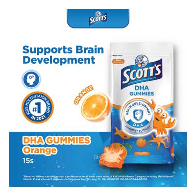 Scott's DHA gummies supports the normal development and functioning of the brain, vision. It also contains vitamin D that supports immunity and the healthy growth and bone development.