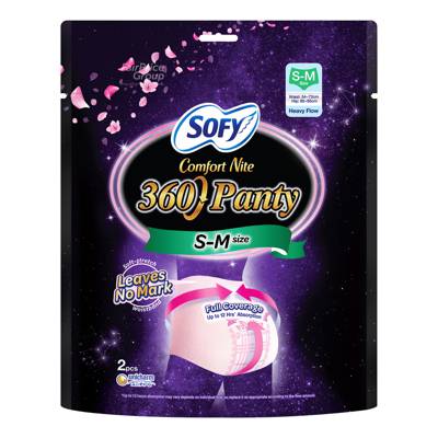 - • 2-in-1 Night Panty for 12 hours protection - A panty type sanitary pad that is fully cover entire buttock for secured sleep