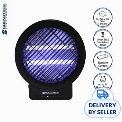 Utilizes ultra-violet (UV) rays to lure insects to the high voltage grids, which kill off flies, waps, moths, mosquitoes, etc. and without the aid of sprays or chemicals. HANGING RING COLLECTION TRAY FLUORESCENT UVA LAMP TUBE EFFICIENT AND EFFECTIVE RELIABLE AND PROTECTED FIRE RETARDANT COUNT-UP & COUNTDOWN TIMER FUNCTION UP TO 14 HOURS TIMER REMOTE CONTROL