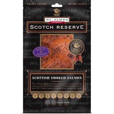 A mouth-watering blend of delicately cracked peppercorns and garlic brings this smoked salmon to life, creating a bold and delicious flavour. Each fillet is carefully trimmed by hand to remove 100% of the dark meat, thinly-sliced and then vacuum sealed for freshness.