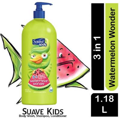 SUAVE KIDS Watermelon Wonder 3in1 KIDS Shampoo Conditioner Body Wash packs a triple punch of fruity clean in one deliciously simple step.