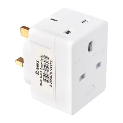 3 Way Multi Plug Adaptor is ideal for supplying electric to multiple items from a single socket. Do not exceed the maximum loading of 13amp, 250v AC. If in doubt, consult a qualified electrician.