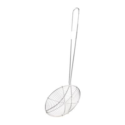 Stainless Steel Skimmer Size: 18cm diameter X 38 cm Handle. Material: Stainless steel. Purpose: Use it to remove foam from stock or soup and to remove solid ingredients from liquids.