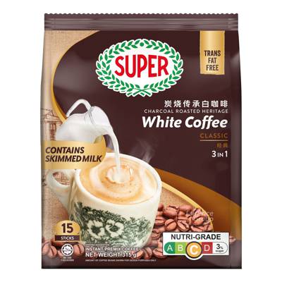 Inspired from the traditional coffee-shop culture in Ipoh, Malaysia, dating back to the 19th Century. Super's roasting techniques capture the richer, smoother, buttery characteristics of this classic brew. Savour the 3 in 1 Classic White Coffee charcoal roasted to perfection which boosts a robust full-bodied taste with a tantalizing aroma. The beans are made with a premium blend of Arabica & Robusta coffee that guarantees a creamy and aromatic, fuller in taste blend.