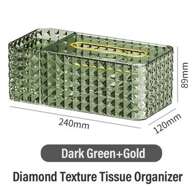Sweet Home Diamond Texture Tissue Organizer(Dark Green+Gold)