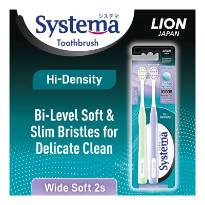 - Developed by LION – Japan’s No.1 Oral Care Company**, Systema Hi-Density Toothbrush (Wide Soft) is 2X gentler on gums* and has bi-level soft & slim bristles for delicate clean