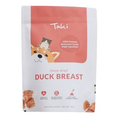 TAKI Duck Breast is a nutritious, easily digestible protein, packed with iron, healthy unsaturated fats, phosphorus, and selenium—key for strong bones, immunity, and vitality. Rich in antioxidants and an ideal alternative for pets with chicken or beef sensitivities, our freeze-drying process locks in essential nutrients for a flavorful, wholesome treat.