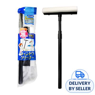 This item is a window wiper with a telescopic handle. It comes with both a draining spatula and a sponge, and it is convenient to use in 2 ways. It has a maximum extension of about 75cm and is convenient with a draining wiper. Handy for hard to reach places.
