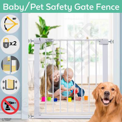 -Customizable Width + Extra Large & Wide: Toddlerfinest safety gate adjusts to fit standard size doorways and openings between 75 cm (29.5) - 82 cm (32) wide and is 76 cm (30) high. Wide passage width of 60 cm (23.5) for convenient walk through; optimized 5.7cm (2.2) tight bars gap to prevent kids and pets from squeezing through. Add-on purchase for extensions (7, 14, 21, 28, 42, 56, 77 cm). Refer to our standard chart size for proper measurement before purchase.