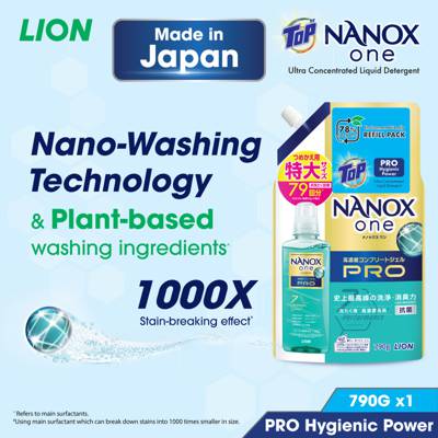 - • Using Lion Japan technology & plant-based washing ingredients to provide 1000X stain-breaking effect & 4X less washing dosage