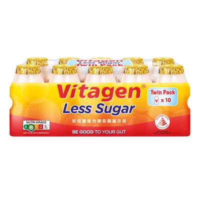 High fibre, fat free and contains live probiotics. Vitagen Less Sugar meets nutritional guidelines set by the health promotion board as a healthier choice.