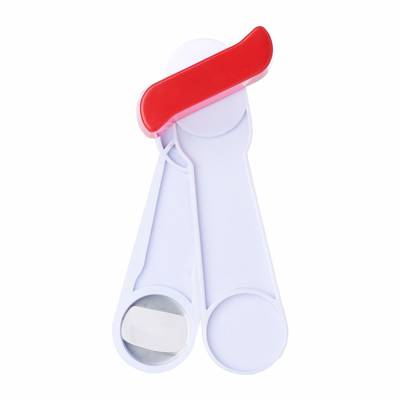 The can and bottle opener can be use in 2 ways: opening cans with small diameter without slipping and lifting bottle caps with its handle. Open up the handles horizontally and close to grip firmly to the side of the can. As it cuts at the side instead of the top of the can, it won't slip easily due to small diameter of the can. Make of high grade materials and easy to clean. L15 W4.5cm.