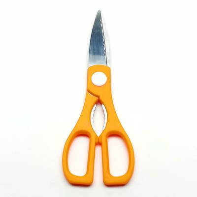 The kitchen scissors is durable and handy for kitchen usage. Its features enables it to be use in 2 ways: cutting food and cracking nuts. Make of high grade materials and easy to clean. Comes in orange, yellow or white colour. L20cm.